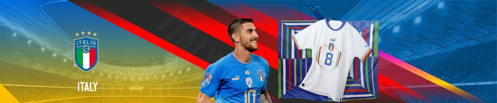Italy National Team is one of the most successful national teams in the history of football and the World Cup. Italy has won four World Cup titles and appeared in two other finals, reaching a third place and a fourth place. Italy has also won two European Championships and appeared in two other finals of the tournament. The team was known as Gli Azzurri. The traditional jersey is blue soccer jerseys, white pants, and blue soccer socks. Looking forward to the performance of the Italy national team in the 2022 World Cup. Are you a fan of the Italy Team? Cheap Italy jersey here. Shop your Italy national team soccer jerseys from PUMA to support your team. Fill your cart with Italy national team soccer jerseys now.